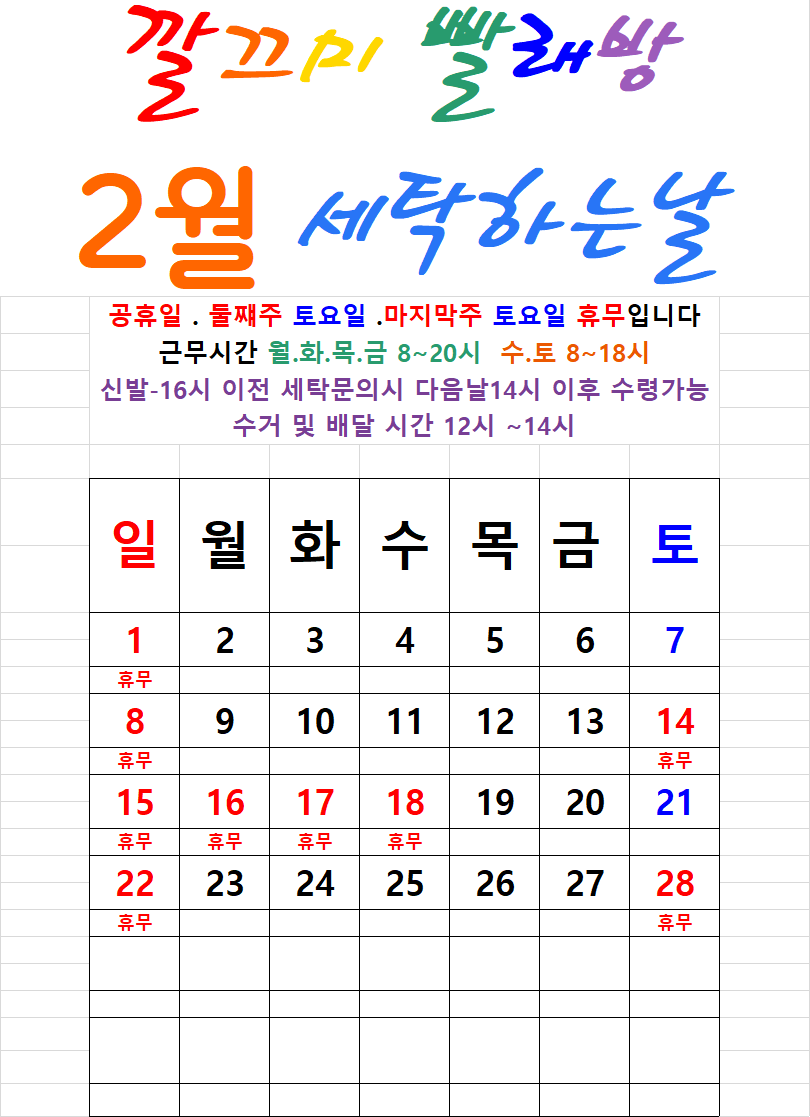깔끄미 빨래방 연락처 010.8894.5452 등록하시면 깔끄미 빨래방 카톡 프로필에 매월 스케줄 업로드 됩니다 ^^