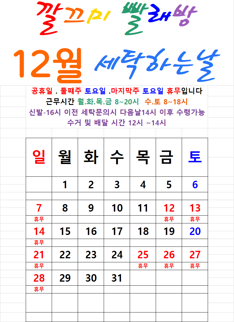 깔끄미 빨래방 연락처 010.8894.5452 등록하시면 깔끄미 빨래방 카톡 프로필에 매월 스케줄 업로드 됩니다 ^^